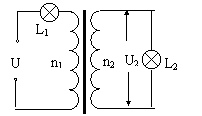 如图所示,理想变压器的原、副线圈分别接着完全相同的灯泡L1、L2。原、副线圈的匝数比n1:n2=2:1,交流电源电压为U,则
