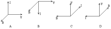 闭合电路中的一段导体,在匀强磁场中以v所示方向运动时,导体内通过的感应电流方向为I,图中正确表示了以上三个量的方向关系是( )