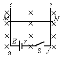 12.在方向水平的、磁感应强度为0.5 T的匀强磁场中,有两根竖直放置的导体轨道cd、e f,其宽度为1 m,其下端与电动势为12 V、内电阻为1 Ω的电源相接,质量为0.1 kg的金属棒MN的两端套在导轨上可沿导轨无摩擦地滑动,如图所示,除电源内阻外,其他一切电阻不计,g=10 m/s2,从S闭合直到金属棒做匀速直线运动的过程中