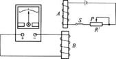 首先按右上图接线,以查明电流表指针的偏转方向与电流方向之间的关系;当闭合S时,观察到电流表指针向左偏,不通电时电流表指针停在正中央.然后按右下图所示将电流表与副线圈B连成一个闭合回路,将原线圈A、电池、滑动变阻器和电键S串联成另一个闭合电路则: