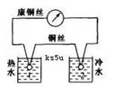 用两种不同的金属丝组成一个回路,触点1插在热水中,触点2 插在冷水中,如图所示,电流表指针会发生偏转,这就是温差发电现象,下列有关温差发电现象的说法中正确的是( )