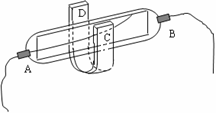 (4分)在用阴极射线管研究磁场对运动电荷作用的实验中,将阴极射线管的A、B两极连在高压直流电源的正负两极上.从A极发射出电子,当将一蹄形磁铁放置于阴极射线管两侧,显示出电子束的径迹如图所示,则阴极射线管的A极应接在电源的 极上(选填“正”或“负”);蹄形磁铁的C端为