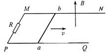 20.(12分)如图所示,水平面上有两根相距0.5m的足够长的平行金属导轨MN和PQ,它们的电阻可忽略不计,在M和 P之间接有阻值为R的定值电阻,导体棒ab长L=0.5m,其电阻为r,与导轨接触良好.整个装置处于方向竖直向上的匀强磁场中,磁感应强度B=0.4T.现使ab以v =10m/s的速度向右做匀速运动.