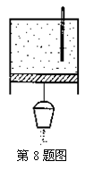 8.一物理实验爱好者利用如图所示的装置研究气体压强、体积、温度三量间的变化关系.导热良好的汽缸开口向下,内有理想气体(即分子之间相互作用势能可忽略的气体),汽缸固定不动,缸内活塞可自由滑动且不漏气.一温度计通过缸底小孔插入缸内,插口处密封良好,活塞下挂一个沙桶,沙桶装满沙子时,活塞恰好静止.现给沙桶底部钻一个小洞,细沙慢慢漏出,外部环境温度恒定,则( )