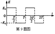 9.在竖直方向的电场中固定一个质量为m、电荷量为+q的小球,场强E的变化规律如图所示,以竖直向上为场强的正方向,E0=2mg/q.t(0≤t<T)时刻释放小球,在t-t+T时间内合力的冲量大小为 ( )