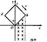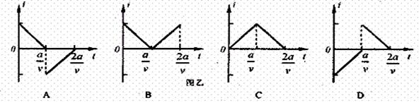 如图甲所示,在坐标系xoy中,有边长为a的正方形金属线框abcd,其一条对角线ac和y轴重合、顶点a位于坐标原点O处.在y轴的右侧的I,IV象限内有一垂直纸面向里的匀强磁场,磁场的上边界L与线框的ab边刚好重合,左边界与Y轴重合,右边界与y轴平行。t=0时刻,线圈以恒定的速度v沿垂直于磁场L边界的方向穿过磁场区域.取沿a→b的感应电流方向为正,则在线圈穿越磁场区域的过程中,感应电流i随时间t变化的图线是图乙中的( )