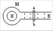 在匀强磁场中放一电阻不计的平行金属导轨,导轨跟大线圈M相接,如图所示。导轨上放一根导线ab,磁感线垂直于导轨所在平面.欲使M所包围的小闭合线圈N产生顺时针方向的感应电流,则导线的运动可能是( )