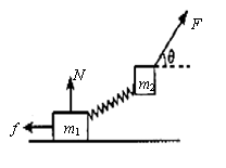 5.如图3所示,质量分别为m1、m2的两个物体通过轻弹簧连接,在力F的作用下一起沿水平方向做匀速直线运动(m1在地面,m2在空中),力F与水平方向成