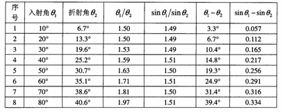 14.某研究性学习小组在探究光的折射过程中,研究折射角与入射角之间的关系,当光由空气斜射入玻璃中时,测得实验数据如下表