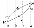 21.图中的虚线a、b、c、d表示匀强电场中的4个等势面。两个带电粒子M、N(重力忽略不计)以平行于等势面的初速度射入电场,运动轨迹分别如图中MPN和NQM所示。已知M是带正电的带电粒子。则下列说法中正确的是