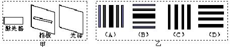 8. 某同学使用激光器作光源,在不透光的挡板上开一条缝宽为0.05 mm的窄缝,进行光的衍射实验,如图甲所示,则他在光屏上看到的条纹是下面乙图中的哪个?