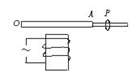 如图所示,OA是水平放置的弹性薄钢片,左端固定于O点,右端固定有一个软铁圆柱体,P为套在软铁圆柱体上的重物。调节P的位置可以改变OA上下振动的固有频率,使其在40Hz~120Hz之间变化。在A的正下方固定一个带铁心B的线圈,线圈中通有交变电流,使OA在磁场力作用下做频率为50 Hz的振动。关于OA稳定后的振动情况,下列说法中正确的是