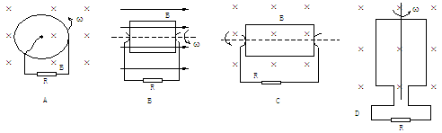 1.如图所示各线圈均在匀强磁场中绕OO'轴匀速转动,则能在电阻中产生交流电的是( )