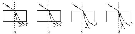 让某特制的一束复色光由空气射向一块平行平面玻璃砖(玻璃较厚),经折射分成两束单色光a、b,已知a光是红光,而b光是蓝光,你认为图3中哪个光路图是正确的( )