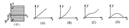 如图所示,图(甲)为一块透明的光学材料的剖面图,在其上建立直角坐标系xoy,设该光学材料的折射率沿y轴正方向均匀减小。现有一束单色光a从原点O处以某一入射角θ由空气射入该材料内部,则单色光a在该材料内部可能的传播途径是图(乙)中的