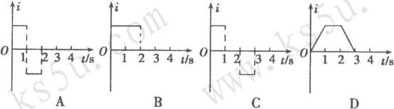 9. 如右图所示,一宽40 cm的匀强磁场区域内磁场方向垂直纸面向里,一边长为20 cm的正方形导线框位于纸面内,以垂直于磁场边界的恒定速度v= 20 cm/s通过磁场区域,在运动过程中,线框有一边始终与磁场区域的边界平行.取它刚进入磁场的时刻t=0,在下图中,正确反映感应电流强度随时间变化规律的是.