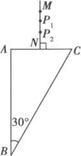 (12分)如图所示,用某种折射率较大的透光物质制成的直角三棱镜ABC,已知∠BAC=90º,∠ABC= 30º,在垂直于AC面的直线MN上插上两枚大头针Pl、P2,在AB面的左侧通过棱镜观察大头针Pl、P2的像,调整视线方向,直到Pl的像被P2的像挡住,在观察的这一侧先后插上两枚大头针P3、P4,使P3挡住_____的像、_____的像,使P4挡住_____和_______的像、________的像,记下P3、P4和棱镜的位置,移去大头针和三棱镜,过P3、P4作直线与AB面交于D,量出该直线与AB间的夹角为45º,则该物质的折射率n=_______,并作出光路图.
