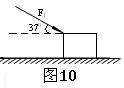 17.(10分)如图10所示,一个质量为m=2kg物体受到与水平面成370角斜向下方的推力F1=10N作用,在水平地面上移动了距离l1=2m后撤去推力,此物体又滑行了l2=1.6m的距离后停止了运动,动摩擦因数为0.2.(g=10m/s2)求:
