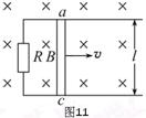 18.(12分)如图11所示,水平放置的平行金属导轨,相距l=0.50 m,左端接 一电阻R=0.20 Ω,磁感应强度B=0.40 T的匀强磁场方向垂直于导轨平面,导体棒ac垂直放在导轨上,并能无摩擦地沿导轨滑动,导轨和导体棒的电阻均可忽略不计,当ac以v=4.0 m/s的速度水平向右匀速滑动时.求: