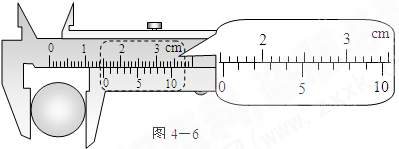 (1)用游标为10分度的卡尺测量小球的直径。某次测量的示数如图4-6所示,读出小球直径d的值为 cm。