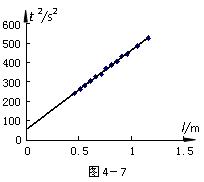 (2)该同学根据实验数据,利用计算机作出t 2 – l图线如图4-7所示。根据图线拟合得到