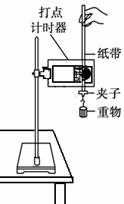 11、(4分)利用图中所示的装置可以研究自由落体运动。实验中需要调整好仪器,接通打点计时器的电源,松开纸带,使重物下落。打点计时器会在纸带上打出一系列的小点。