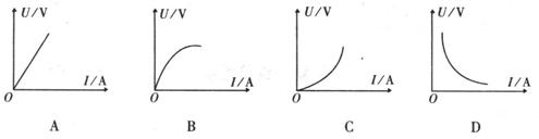 的U-I图象中,可以表示出金属铂电阻的U-I图线的是 ( )