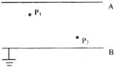 (2)、如图所示,A、B两板间的匀强电场E=1.2×108N/C,两板相距5cm,P1离A板0.5cm,P2离B板0.5cm。若B板带正电荷且接地,则P1点的电势为________V,P2点的电势为________V。若有一电荷q=-2×10-6C从P1移到P2,电势能_______(填“增加”或“减少”)了_______J。
