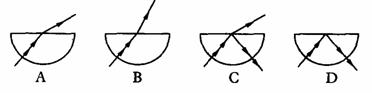 4.一束单色光由空气射入截面为半圆形的玻璃砖,再由玻璃砖射出,入射光线的延长线沿半径指向圆心,则在如图所示的四个光路图中,有可能用来表示上述光现象的是 ( )
