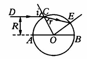 (2)若DC光进入介质球后,第二次到达介质球的界面时,从球内折射出的光线与入射光线平行,求介质的折射率.