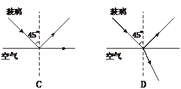 2、斜插入水中的筷子与竖直方向成45°角,由空气中向下观察看,看到筷子筷子在水中的部分与竖直方向所成的角为θ,则( )