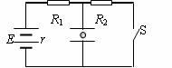 15.如图所示,电源电动势为10V,内电阻为0.5Ω,R1=5.5Ω,R2=4Ω,当S闭合时,一带电油滴恰好静止在水平放置的平行金属板间。求S断开时,油滴的加速度为多大?方向如何?