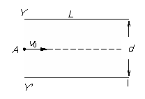 (10分)如图所示,真空中水平放置的两个相同极板Y和Y'长为L,相距d,在两板间加上可调偏转电压U,一束质量为m、带电量为+q的粒子(不计重力)从两板左侧中点A以初速度v0沿水平方向射入电场且能穿出.