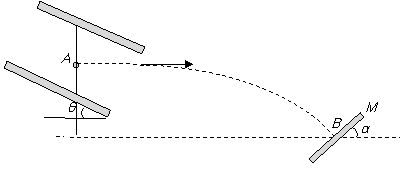 18.(14分)如图所示,板长为L的平行板电容器倾斜固定放置,极板与水平线夹角θ=300,某时刻一质量为m,带电量为q的小球由正中央A点静止释放,小球离开电场时速度是水平的,落到距离A点高度为h的水平面处的B点,B点放置一绝缘弹性平板M,当平板与水平夹角a=450时,小球恰好沿原路返回A点.求: