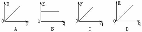 14、一带电量为q的检验电荷在电场中某点受到的电场力大小为F,该点场强大小为E,则下面能正确反映这三者关系的是 ( )