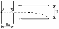 如图所示为两组平行板金属板,一组竖直放置,一组水平放置,今有一质量为m,带电量为e的电子静止在竖直放置的平行金属板的A点,经电压U0加速后通过B点进入两板间距为d、电压为U的水平放置的平行金属板间,若电子从两块水平平行板的正中间射入,且最后电子刚好能从金属板的右侧边缘穿出,其中A、B分别为两块竖直板的中点,求: