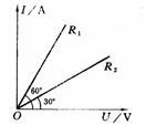 4.两电阻R1、R2中的电流I和电压U的关系图线如右图所示,则两电阻的大小之比R1:R2为: