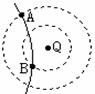 如右图在点电荷Q产生的电场中,虚线表示等势面,实线表示α粒子(带正电)穿过电场时的轨迹,A、B为轨迹与两等势面的交点,则下列说法正确的是: