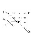 如图所示,等腰直角三角形OPQ区域内存在匀强磁场,另有一 等腰直角三角形ABC以恒定的速度沿垂直于磁场方向穿过磁场,穿越过程中速度始终与AB边垂直且保持AC平行于OQ,关于线框中的感应电流,以下说法正确是: