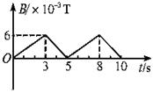 一个边长为6 cm的正方形金属线框置于匀强磁场中,线框平面与磁场垂直,电阻为0.36 Ω.磁感应强度B随时间t的变化关系如图所示.则线框中感应电流的有效值为( )