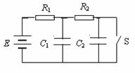 15.(8分)如图所示,电源电动势E=10 V,内阻不计,两电容器C1=C2=30μF,电阻R1=4.0Ω,R2=6.0Ω,求: