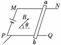 (12)水平面上有电阻不计的U形导轨NMPQ,它们之间的宽度为L,M和P之间接入电动势为E的电源(不计内阻).现垂直于导轨搁一根质量为m、电阻为R的金属棒ab,并加一个范围较大的匀强磁场,磁感应强度大小为B,方向与水平面夹角为θ斜向上且和棒ab垂直,如图所示.问: