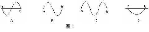 7. 简谐横波传播方向上相距定长s的a、b两点间只存在一个波谷的波形图如图4所示,设图中所示的四种情况下传播方向均为a→b,波速为v。则由图示时刻起,a点首先出现波谷的是