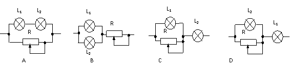 将标有“110V、40W”白炽灯L1和标有“110V、100W”白炽灯L2,与一只滑动变阻器(0-300Ω)组合起来接在220V的线路上,使L1 、L2都能正常发光,下图中能正常发光耗电又最小的接法是