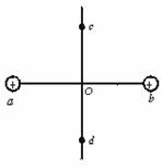 如下图所示,c、d为中垂线上的两对称点且离O点很近,若在c点
