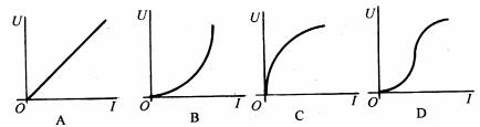 电压(U)和电流(I)的关系可用图线表示.图中给出的四个图线中,肯定不符合实际的是[ ]