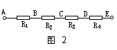 19.在如图2所示的电路中,已知R2=R4,A、C间电压UAC=15V,B、D间电压UBD=7V,则 A、E 间UAE=______V。