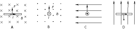 22.在图所示的四个图中,标出了匀强磁场的磁感应强度B的方向、通电直导线中电流I的方向以及通电直导线所受安培力F的方向,其中正确表示这三个方向关系的图是( )