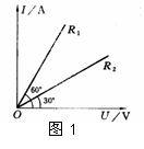 两电阻R1、R2中的电流I和电压U的关系图线如图1所示,则两电阻的大小之比R1:R2为 ( )