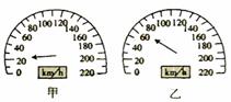 如图所示是一沿笔直公路做匀加速直线运动的汽车的速度计。某同学在汽车中观察速度计指针位置的变化,开始时指针指示在如图甲所示的位置,经过7s后指针如图乙,下列说法正确的是( )